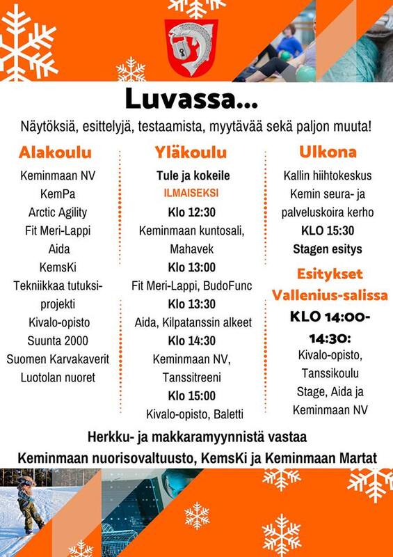 Lauantaina 12.1.2019 vapaa-aikapalvelut järjestää #kaikkitekee tapahtuman yhteistyössä järjestöjen ja yhdistysten kanssa. Ohjelmassa mm. ilmaisia kuntojumppia ja tanssia yläkoulun salissa: