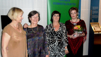 ![]() Seura-aktiivit vastaanottamassa palkintoa. Palkinnon luovuttaja Pirjo-Liisa Vilenius toinen vasemmalta |